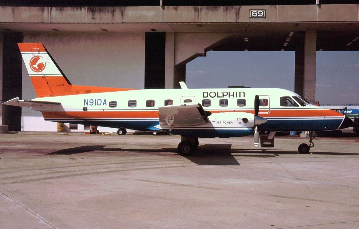 Toward the end of 1981, I found myself in the office of the Director of Operations for a soon-to-be-start-up airline called Dolphin Airways. The appointment had been made for me, but I was interested in the new firm as they planned to launch a regional business-oriented scheduled service in Florida and adjacent states with a new fleet of Fokker F-28 jet airliners. In fact, the D.O. had an artist’s rendering of one of these to-be-delivered jets in Dolphin livery on the office wall. While I expected to interview for an initial cadre captain position, I soon learned their plans had changed. Rather than starting a fleet of regional jet airliners, they instead ordered the Embraer EMB-110P1 Bandeirante.