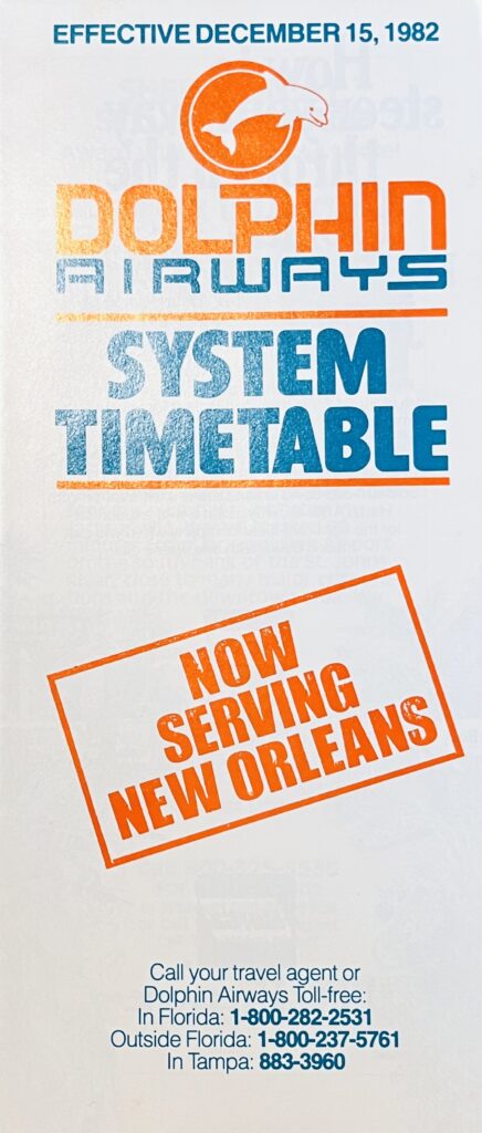 The passengers were not too impressed with this commuter plane. Dolphin Airways was advertised as “a business person’s airline.” We served Tallahassee, Florida’s capital, as well as Tampa, Jacksonville, Orlando, Fort Lauderdale, West Palm Beach, Panama City, and Pensacola. Service extended to Savannah and New Orleans.
